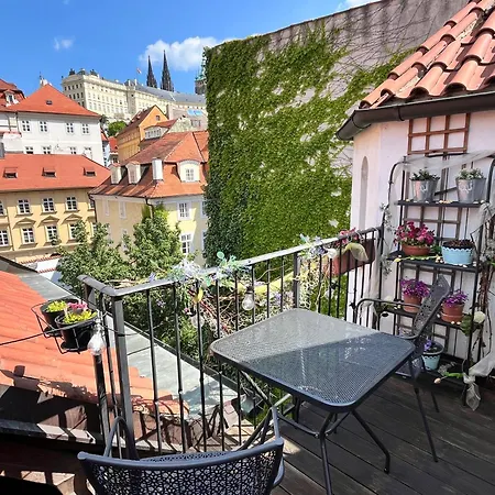 La struttura offre servizi di self-catering, come un angolo cottura attrezzato e una zona pranzo all'aperto per la comodità degli ospiti. L'appartamento si trova a circa 5 minuti a piedi dalla fermata dell'autobus Prazsky hrad e a circa 700 metri dalla stazione della metropolitana Malostranská.